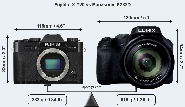 Size Fujifilm X-T20 vs Panasonic FZ82D