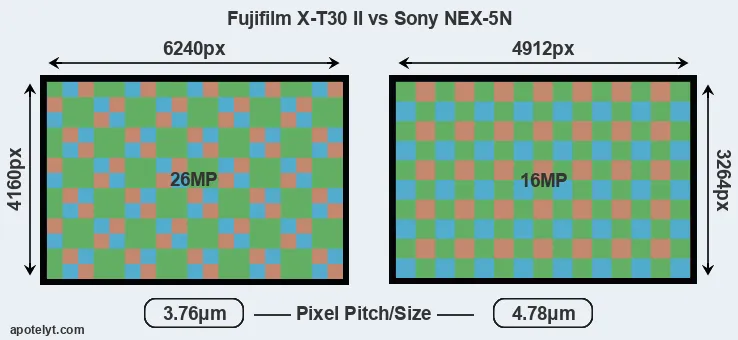 | Sensor Specs | Fujifilm X-T30 II | Sony NEX-5N |