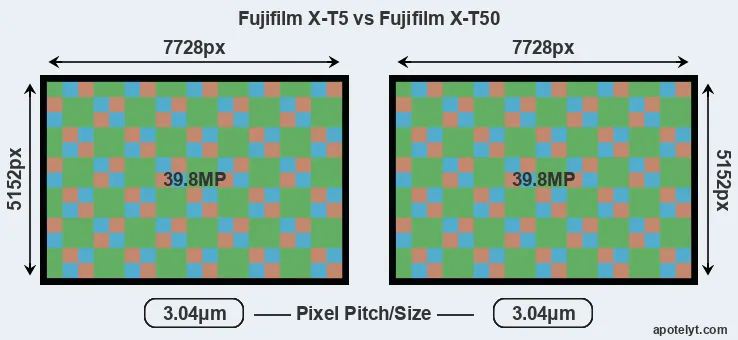 | Sensor Specs | Fujifilm X-T5 | Fujifilm X-T50 |