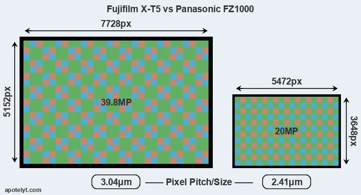 | Sensor Specs | Fujifilm X-T5 | Panasonic FZ1000 |