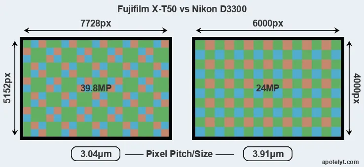 | Sensor Specs | Fujifilm X-T50 | Nikon D3300 |