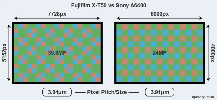 | Sensor Specs | Fujifilm X-T50 | Sony A6400 |