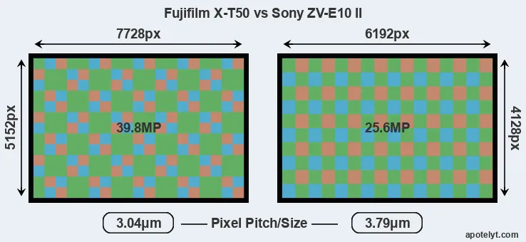 | Sensor Specs | Fujifilm X-T50 | Sony ZV-E10 II |