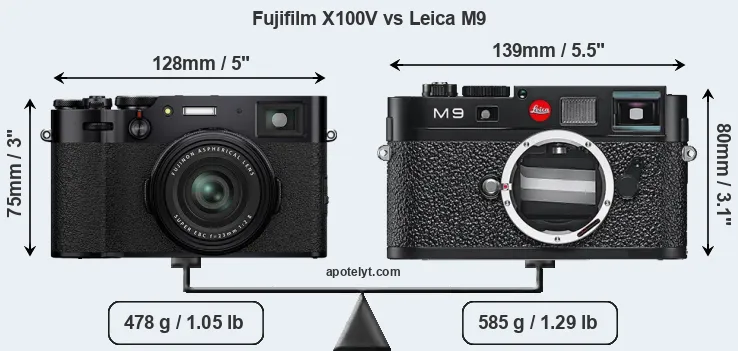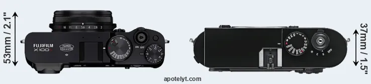 Size Fujifilm X100V vs Leica M9