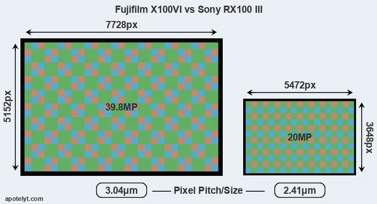 | Sensor Specs | Fujifilm X100VI | Sony RX100 III |