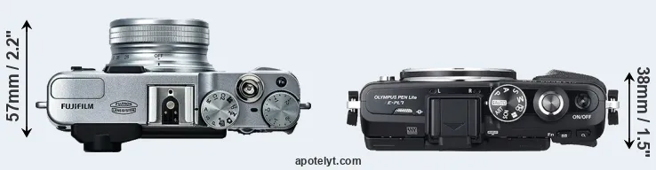 The side-by-side display below illustrates the physical size and weight of the Fujifilm X20 and the Olympus E-PL7. The two cameras are presented according to their relative size. Three consecutive perspectives from the front, the top, and the back are available. All width, height and depth dimensions are rounded to the nearest millimeter.