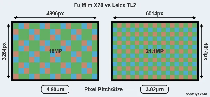 | Sensor Specs | Fujifilm X70 | Leica TL2 |