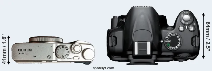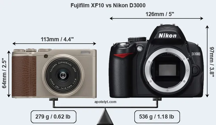 | Body Specs | Fujifilm XF10 | Nikon D3000 |