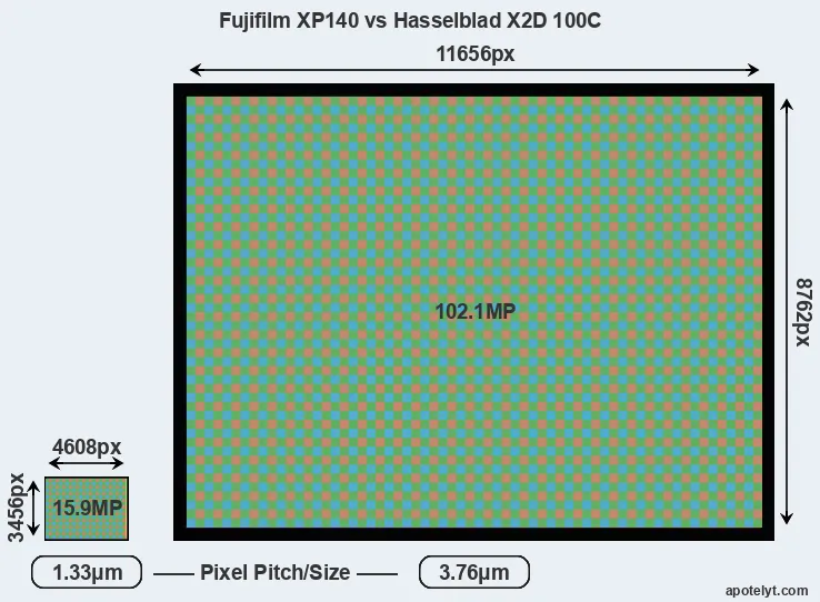 | Sensor Specs | Fujifilm XP140 | Hasselblad X2D 100C |