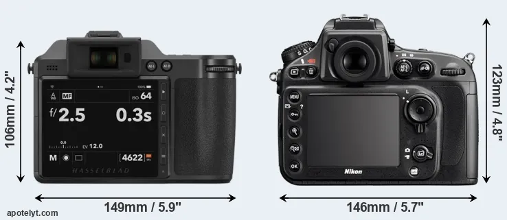 | Body Specs | Hasselblad X2D 100C | Nikon D800 |