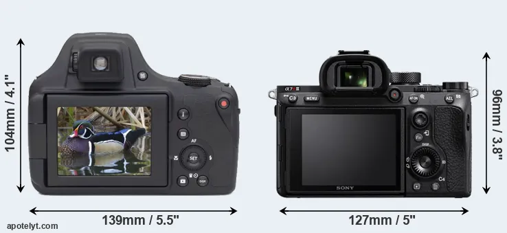 The above size and weight comparisons are to some extent incomplete and possibly misleading, as the AZ901 has a lens built in, whereas the A7R III is an interchangeable lens camera that requires a separate lens. Attaching the latter will add extra weight and bulk to the setup. You can compare the optics available for the A7R III and their specifications in the Sony FE Lens Catalog.