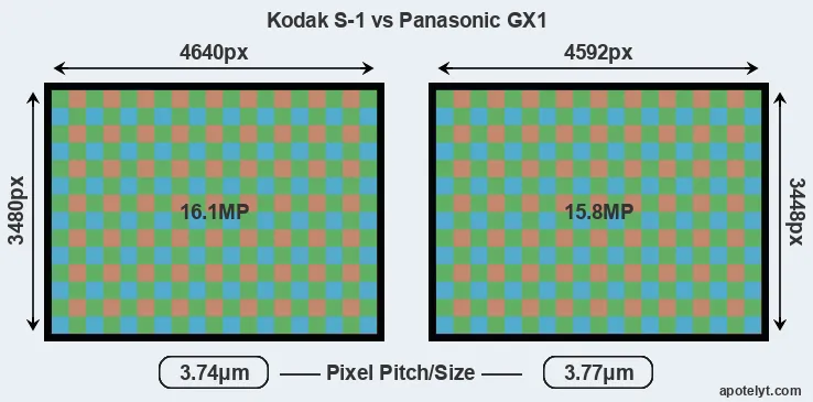 | Sensor Specs | Kodak S-1 | Panasonic GX1 |