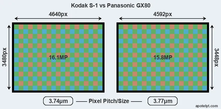 | Sensor Specs | Kodak S-1 | Panasonic GX80 |