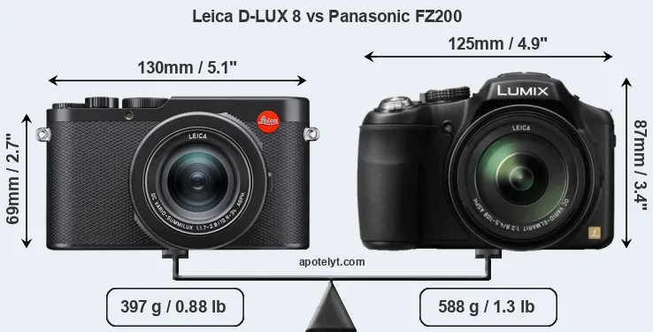 | Body Specs | Leica D-LUX 8 | Panasonic FZ200 |