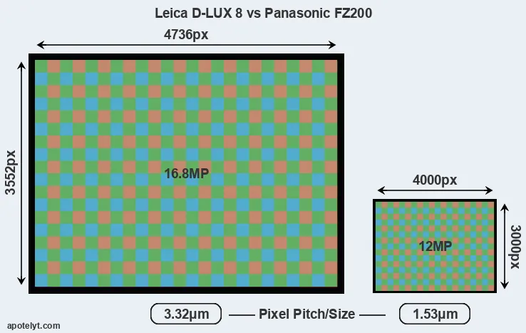 | Sensor Specs | Leica D-LUX 8 | Panasonic FZ200 |