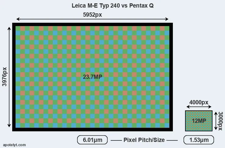 | Sensor Specs | Leica M-E Typ 240 | Pentax Q |