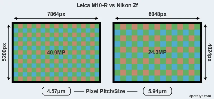 | Sensor Specs | Leica M10-R | Nikon Zf |