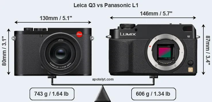 The above size and weight comparisons are to some extent incomplete and possibly misleading, as the Q3 has a lens built in, whereas the L1 is an interchangeable lens camera that requires a separate lens. Attaching the latter will add extra weight and bulk to the setup. You can compare the optics available for the L1 and their specifications in the Four Thirds Lens Catalog.