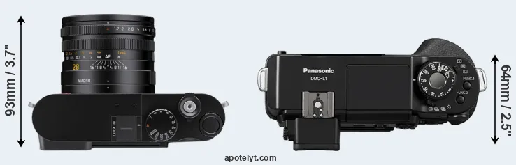 If the front view area (width x height) of the cameras is taken as an aggregate measure of their size, the Panasonic L1 is notably larger (22 percent) than the Leica Q3. It is worth mentioning in this context that the Q3 is splash and dust resistant, while the L1 does not feature any corresponding weather-sealing.
