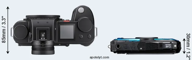 The above size and weight comparisons are to some extent incomplete and possibly misleading, as the WG-90 has a lens built in, whereas the Leica SL3-S is an interchangeable lens camera that requires a separate lens. Attaching the latter will add extra weight and bulk to the setup.