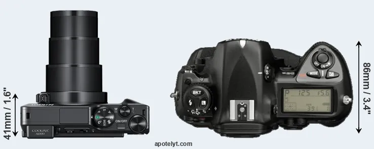 The above size and weight comparisons are to some extent incomplete and possibly misleading, as the A1000 has a lens built in, whereas the D2X is an interchangeable lens camera that requires a separate lens. Attaching the latter will add extra weight and bulk to the setup. You can compare the optics available for the D2X and their specifications in the Nikon Lens Catalog.
