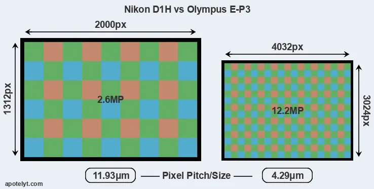 | Sensor Specs | Nikon D1H | Olympus E-P3 |