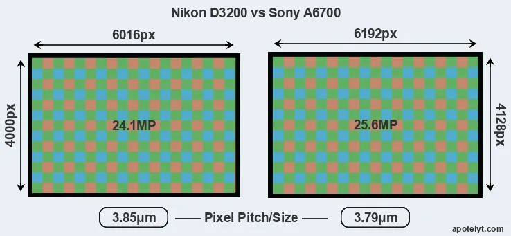 | Sensor Specs | Nikon D3200 | Sony A6700 |