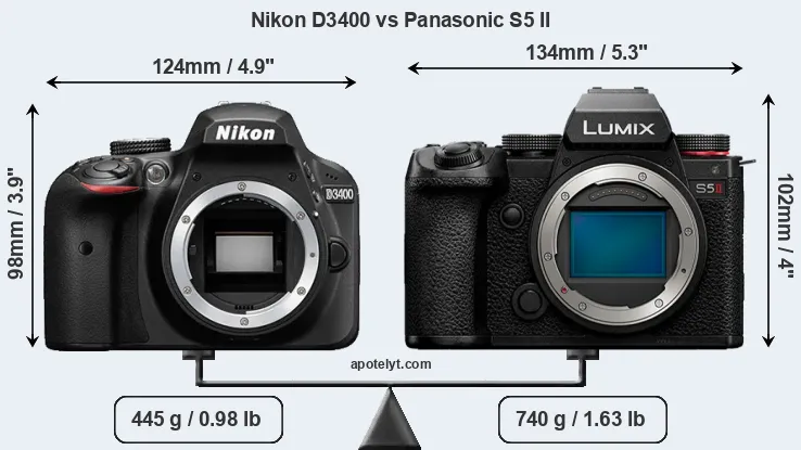 | Body Specs | Nikon D3400 | Panasonic S5 II |