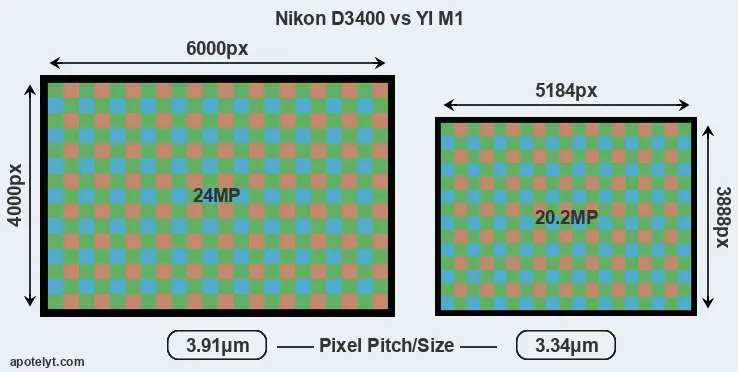 | Sensor Specs | Nikon D3400 | YI M1 |