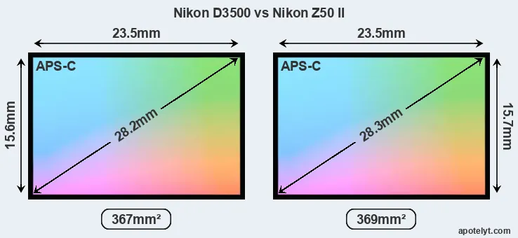 | Sensor Specs | Nikon D3500 | Nikon Z50 II |