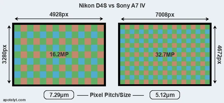 | Sensor Specs | Nikon D4S | Sony A7 IV |