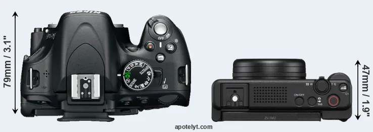 The above size and weight comparisons are to some extent incomplete and possibly misleading, as the ZV-1 II has a lens built in, whereas the D5100 is an interchangeable lens camera that requires a separate lens. Attaching the latter will add extra weight and bulk to the setup. You can compare the optics available for the D5100 and their specifications in the Nikon Lens Catalog.