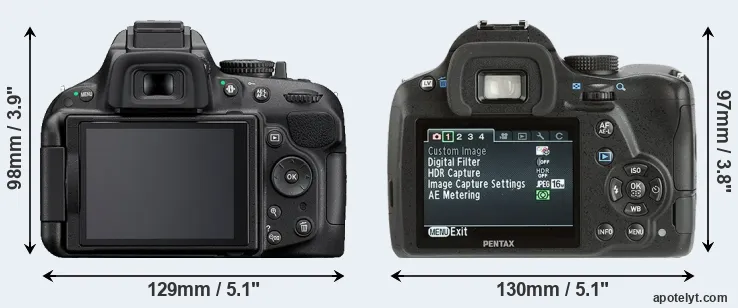 | Body Specs | Nikon D5200 | Pentax K-500 |