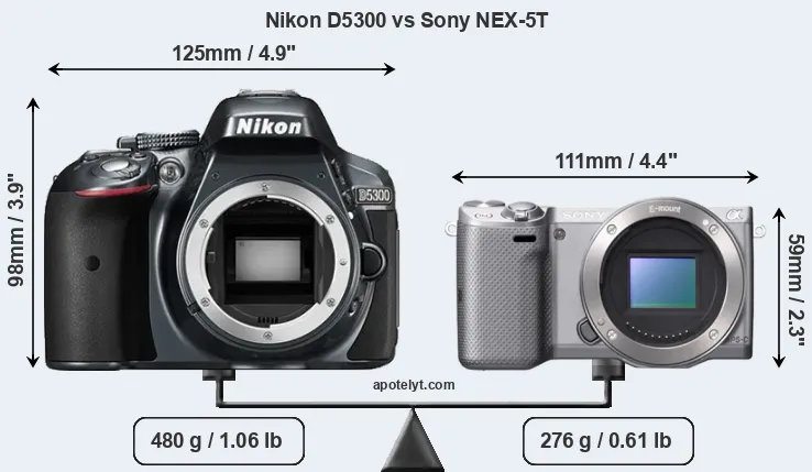 | Body Specs | Nikon D5300 | Sony NEX-5T |