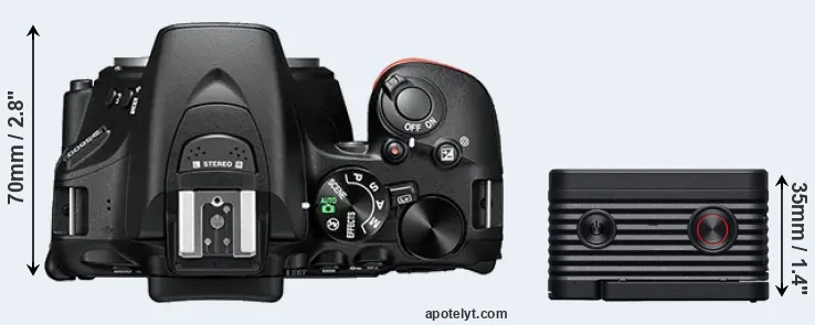 | 1. | Nikon D5600 | 124 mm | 97 mm | 70 mm | 465 g | 970 | Nov 2016 | US$ 699 | ebay.com | ||