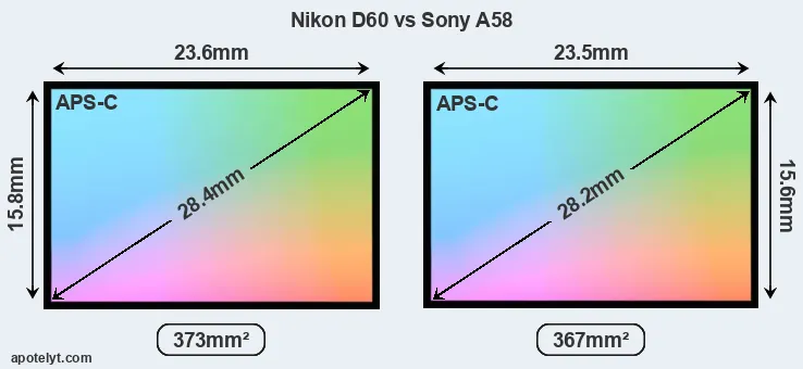 | Sensor Specs | Nikon D60 | Sony A58 |