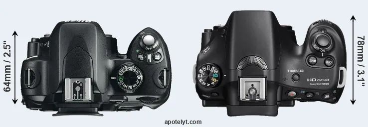 | 2. | Sony A58 | 129 mm | 95 mm | 78 mm | 492 g | 690 | n | Feb 2013 | US$ 599 | ebay.com | |