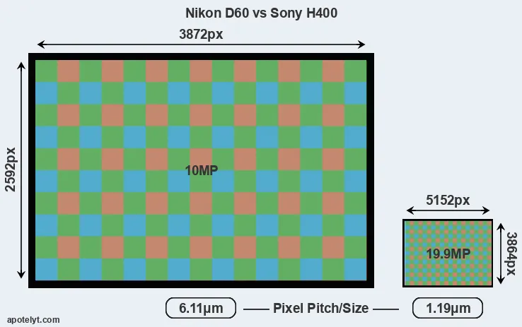 | Sensor Specs | Nikon D60 | Sony H400 |