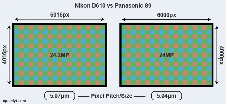 | Sensor Specs | Nikon D610 | Panasonic S9 |