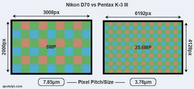 | Sensor Specs | Nikon D70 | Pentax K-3 III |