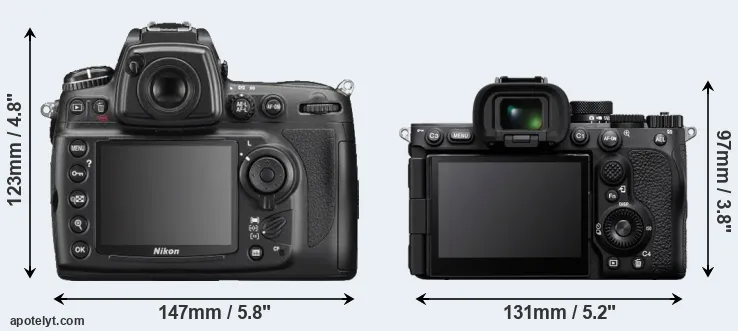 The above size and weight comparisons are to some extent incomplete since they do not consider the interchangeable lenses that both of these cameras require. Both cameras have similarly sized sensors, but DSLRs have a larger flange-to-focal plane distance than mirrorless cameras, which imposes contraints on the optical engineering process and generally leads to bigger and heavier lenses. You can compare the optics available for the two cameras in the Nikon Lens Catalog (D700) and the Sony FE Lens Catalog (A7R V). Mirrorless cameras, such as the A7R V, have moreover the advantage that they can use many lenses from other systems via adapters, as they have a relatively short flange to focal plane distance.