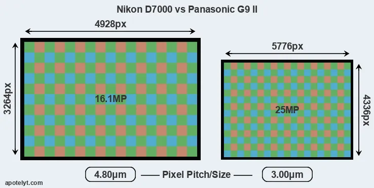 | Sensor Specs | Nikon D7000 | Panasonic G9 II |