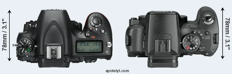 | 11. | Nikon D7200 | 136 mm | 107 mm | 76 mm | 765 g | 1110 | Y | Mar 2015 | US$ 1 199 | ebay.com | |