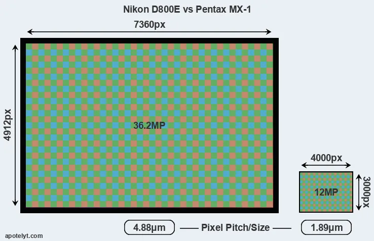 | Sensor Specs | Nikon D800E | Pentax MX-1 |