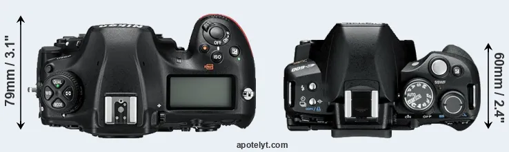 | 7. | Nikon D500 | 147 mm | 115 mm | 81 mm | 860 g | 1240 | Y | Jan 2016 | US$ 1 999 | ebay.com | |