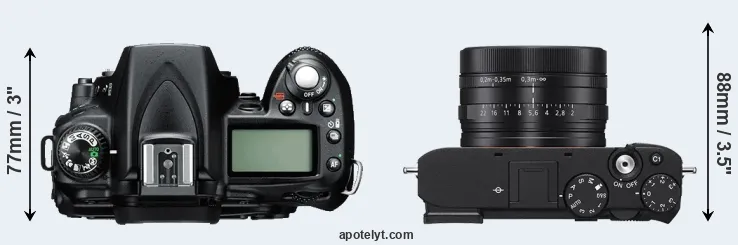 The above size and weight comparisons are to some extent incomplete and possibly misleading, as the RX1R III has a lens built in, whereas the D90 is an interchangeable lens camera that requires a separate lens. Attaching the latter will add extra weight and bulk to the setup. You can compare the optics available for the D90 and their specifications in the Nikon Lens Catalog.