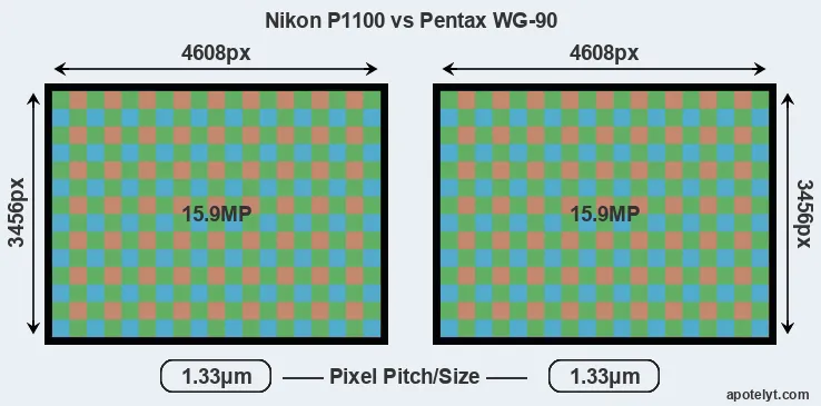 | Sensor Specs | Nikon P1100 | Pentax WG-90 |