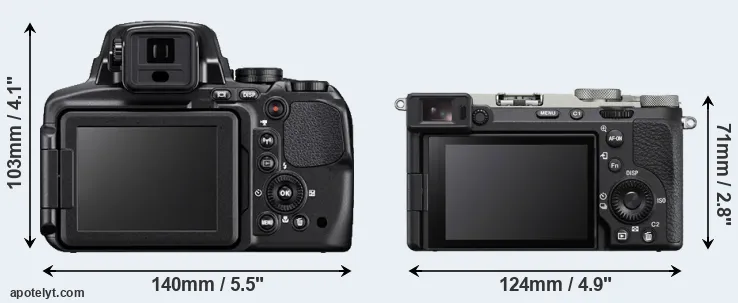 The above size and weight comparisons are to some extent incomplete and possibly misleading, as the P900 has a lens built in, whereas the A7C II is an interchangeable lens camera that requires a separate lens. Attaching the latter will add extra weight and bulk to the setup. You can compare the optics available for the A7C II and their specifications in the Sony FE Lens Catalog.