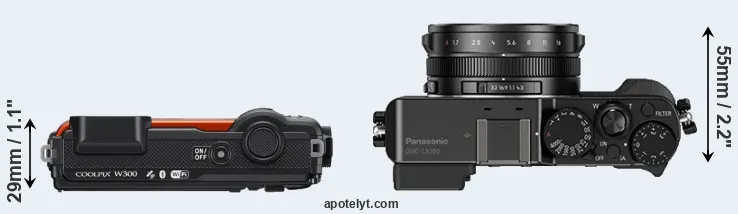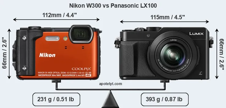 Size Nikon W300 vs Panasonic LX100