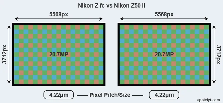 | Sensor Specs | Nikon Z fc | Nikon Z50 II |